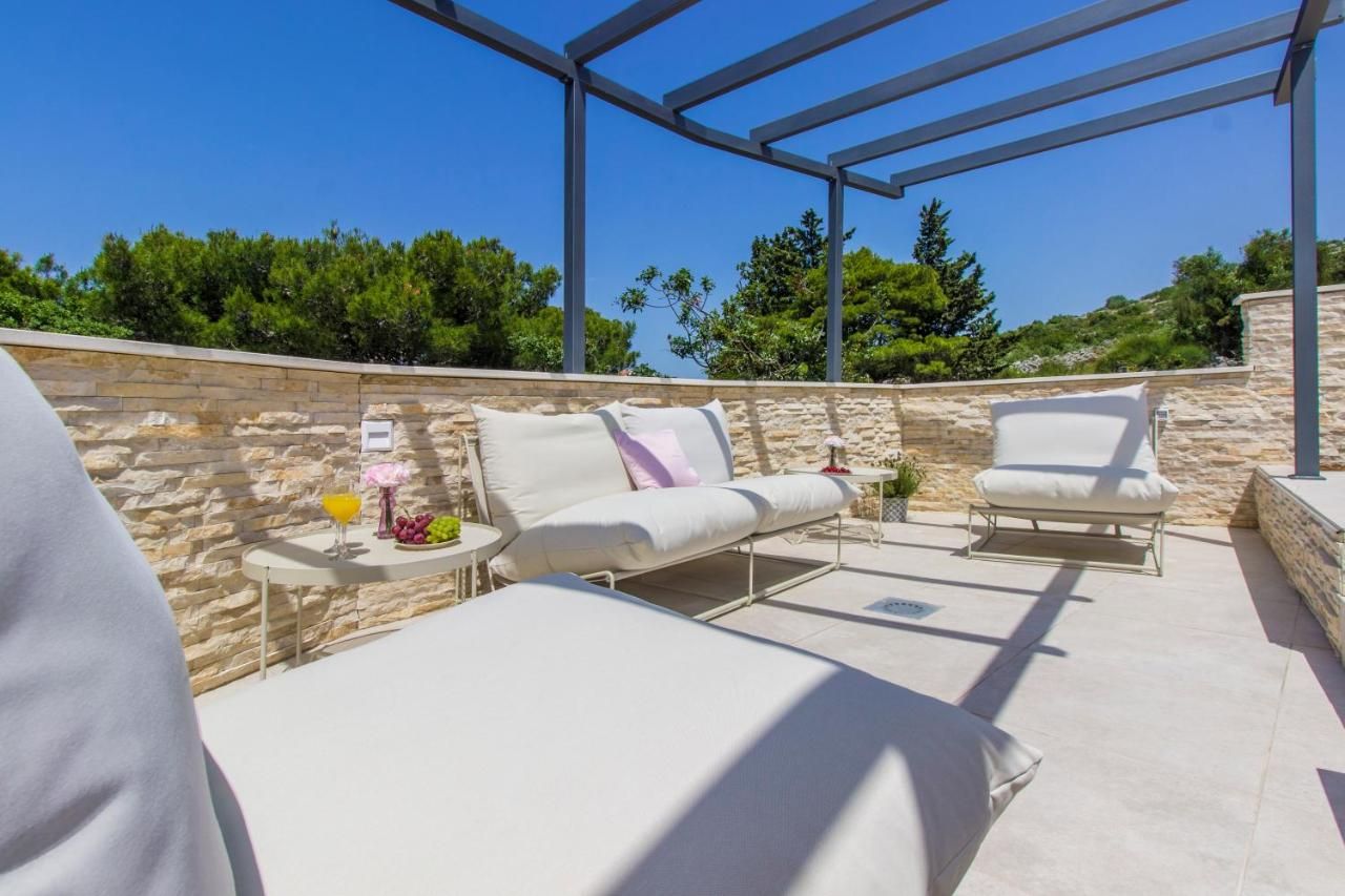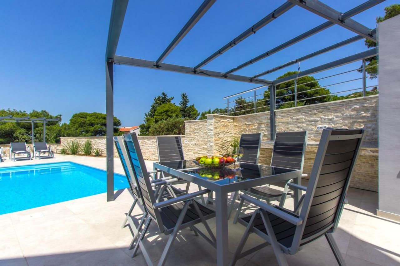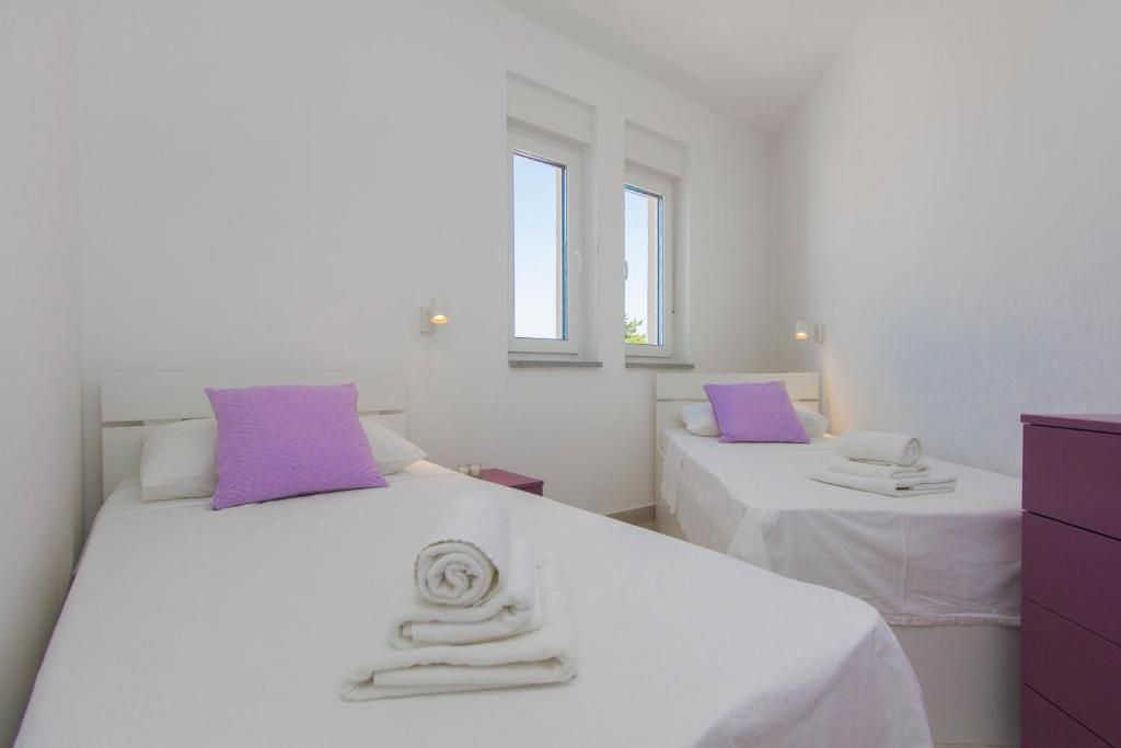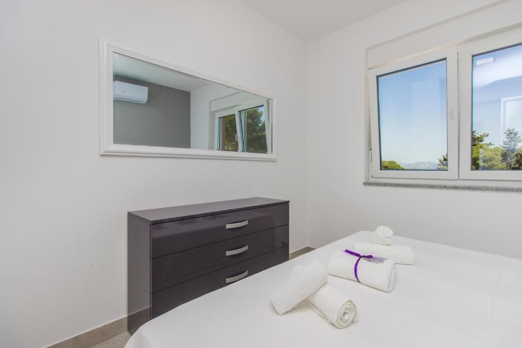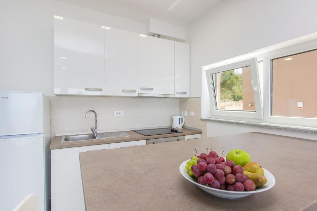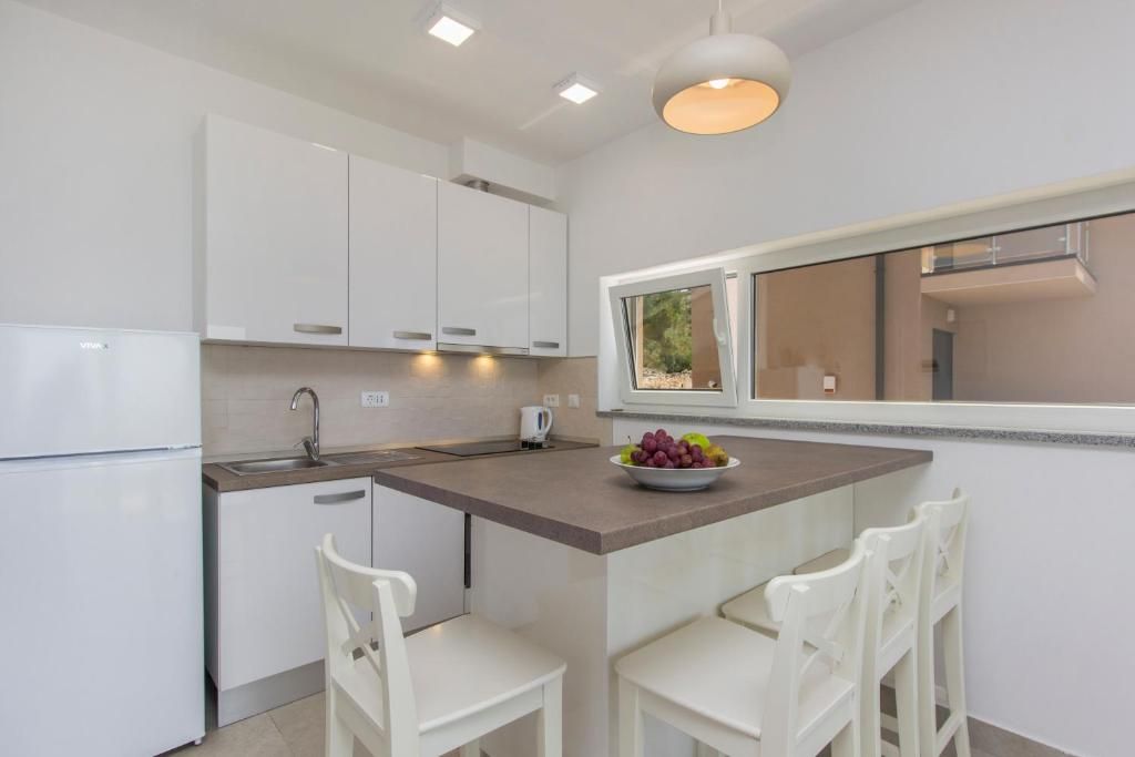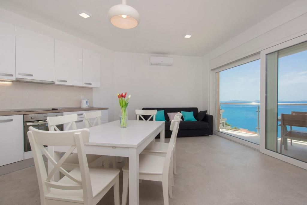 Svi apartmani imaju pogled na more i Kornate, svaki apartman ima pristup bazenu, te je potpuno opremljen i klimatiziran.